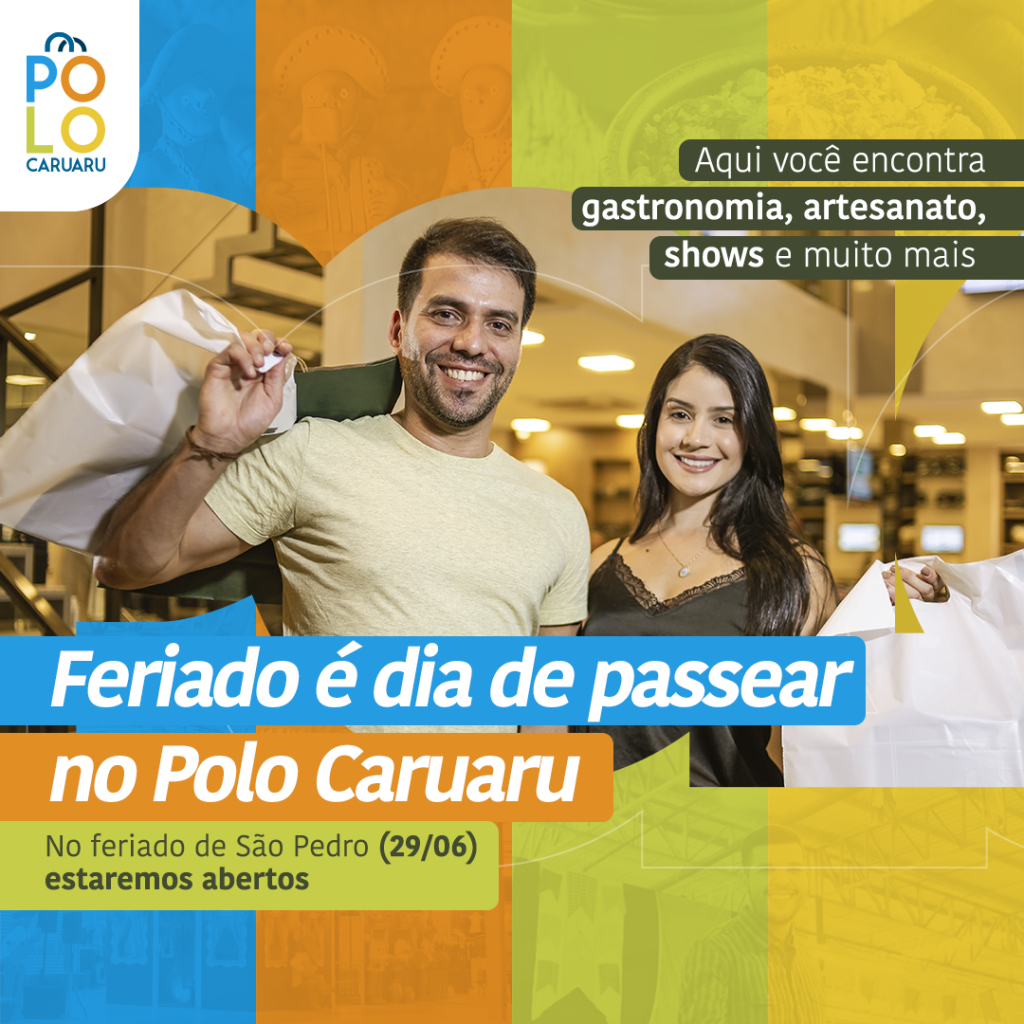 Para comemorar o dia de São Pedro, o Polo Caruaru vai realizar uma programação especial de feriado. O Centro de Compras e Lazer estará aberto das 9h às 18h, nesta quarta-feira (29), e vai contar com um show de Elias Guinho, no projeto Música na Praça. O show é gratuito e vai acontecer no palco do Vila Polo, a partir das 12h.